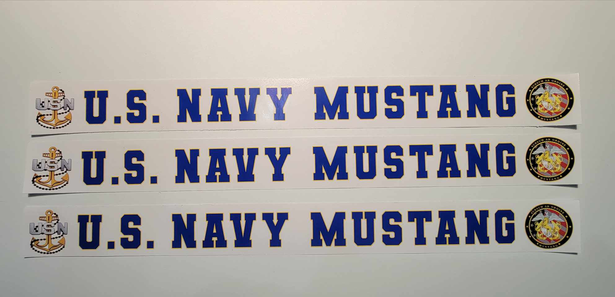 Show off your Mustang spirit with our striking U.S. Navy Mustang Decal! At 18 inches long, this decal isn't just an accessory; it's a badge of honor for your vehicle. Made from top-quality 4 mil white gloss vinyl, this decal radiates vibrant, eye-catching colors. Engineered to endure the great outdoors, it boasts a durability of up to 4 years. So, rain or shine, your Mustang pride will shine through! Perfect for cars, trucks, or any surface that deserves a touch of Navy excellence. Get yours today!
